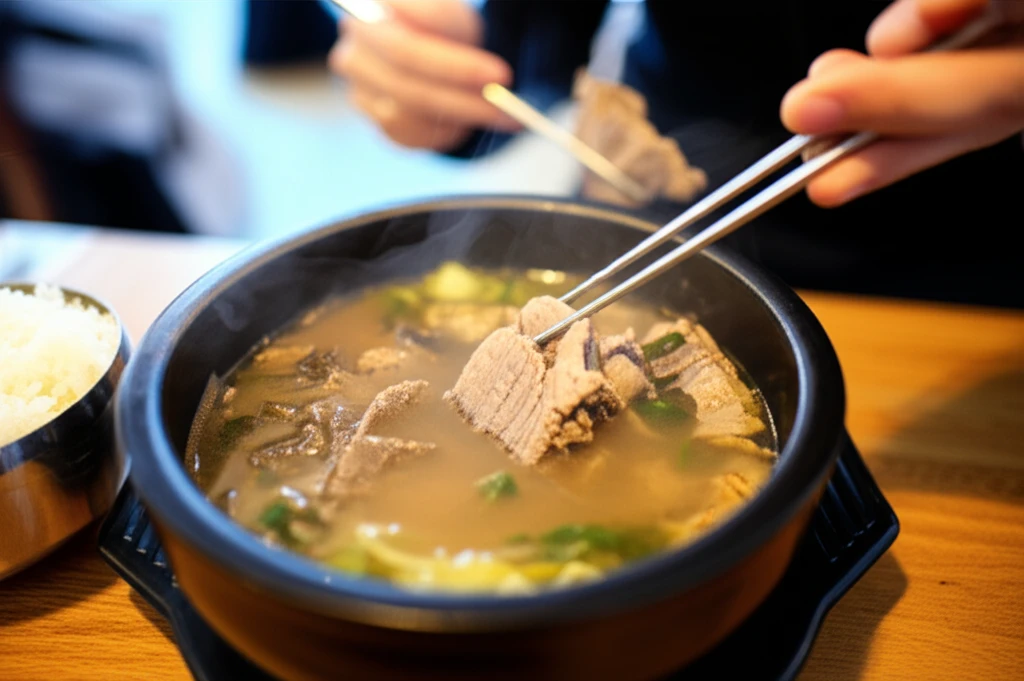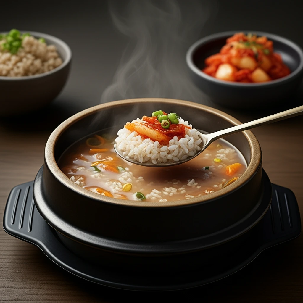 - 밥은 반 공기만 따로: 밥을 국에 말면 탄수화물 섭취 속도가 빨라집니다. 따로 국밥 스타일을 유지하며 양을 조절하세요.