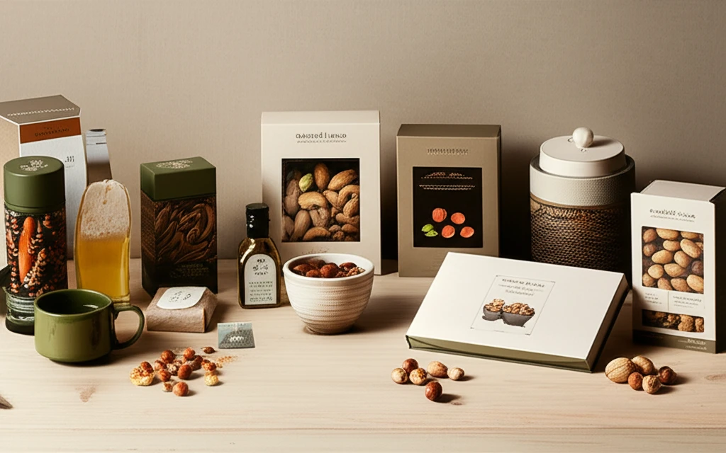 - 견과류 및 건과일 세트: 무염 로스팅 기술과 세련된 소포장으로 고급스러움을 더한 구성