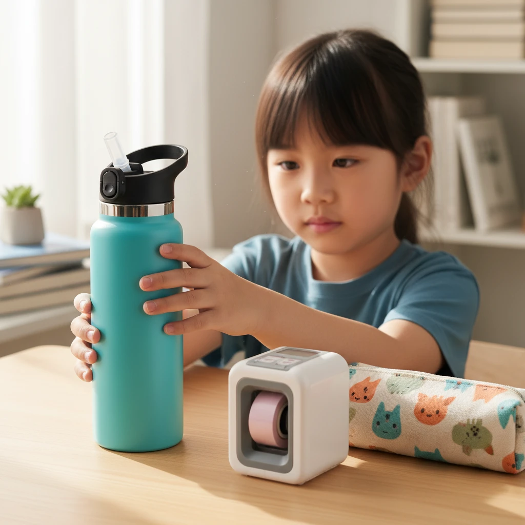 - 원터치 스테인리스 물병: 학교 정수기 대신 개인 물병 지참이 필수인 요즘, 아이들이 혼자서도 쉽게 열 수 있는 가벼운 물병이 최고입니다.